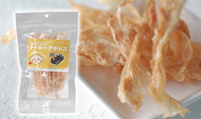 七面鳥のスジを乾燥させているので、噛むごとにターキーの旨味がにじみ出て愛犬も大興奮です!