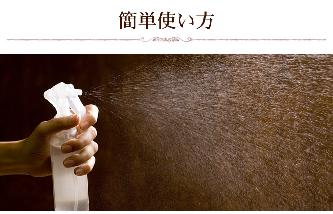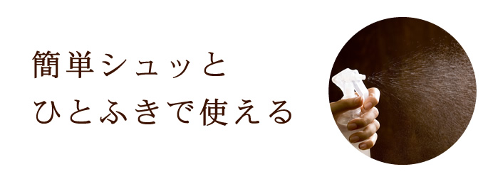 ミストのような霧のスプレーがシュッとひとふきで全身を柔らかく包み込みます。 希釈ブレンドだから薄めたりなどの手間も必要ありません!