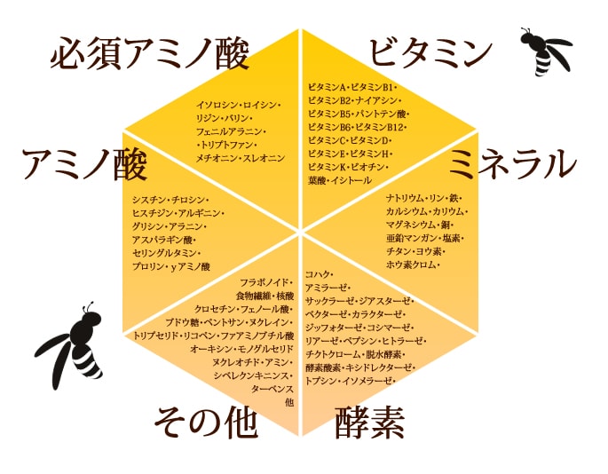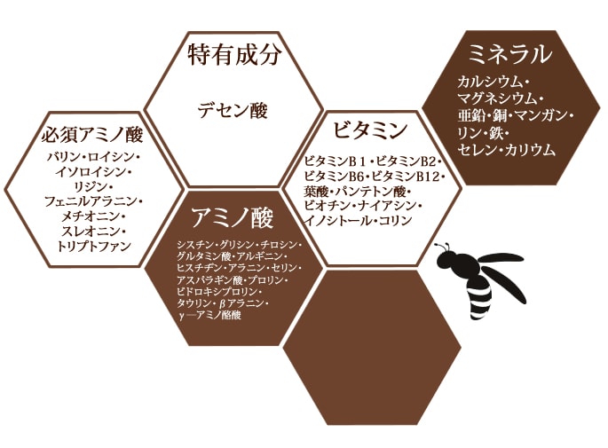 ローヤルゼリーには40種類を超える栄養素が含まれています。