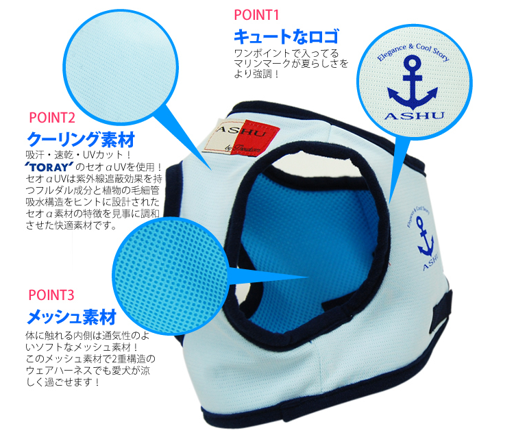 丈夫で使いやすいASHU クールウェアハーネスの特徴