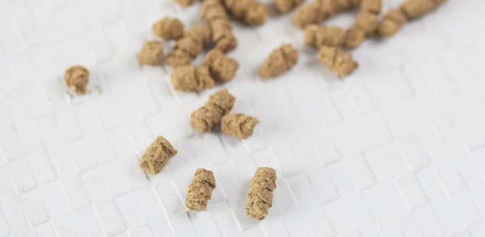 粗蛋白質32%以上、粗脂肪11%以上、粗繊維3%以下、粗灰分7%以下、水分9%以下、リン1.2%、カルシウム1.45%、ナトリウム0.3%