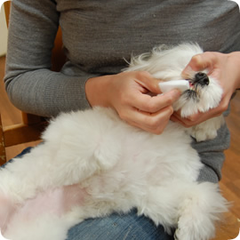 方法1 スポイトでオイルを適宣吸い取り愛犬の歯茎に左右と前に直接垂らします。