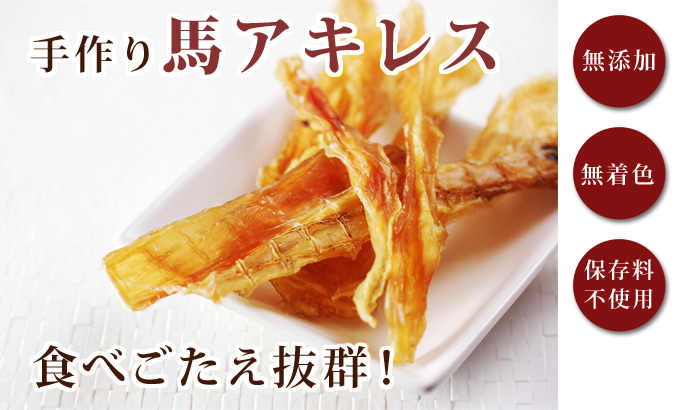 馬肉の良質なアキレスを、素材そのまま生かして栄養価を損なわないようじっくり低温で乾燥させました。