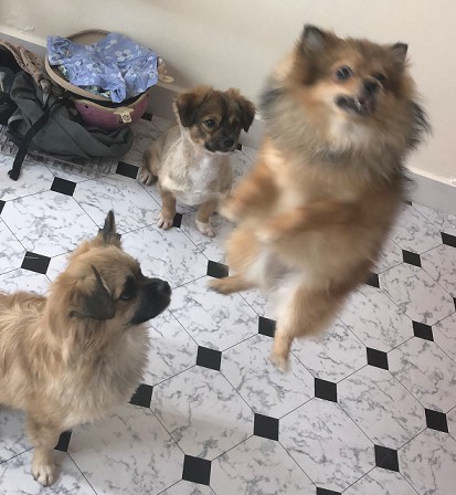 【待ちきれなくてオヤツに向かって1人だけジャンプするすみよし(すみよし1人ブレブレ💦)】