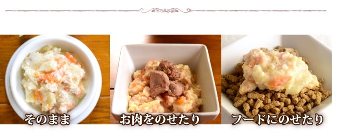 ちょっと胃腸を休めてあげたい時や、脂肪が多いフードが向いていない子への副食にもおすすめです。