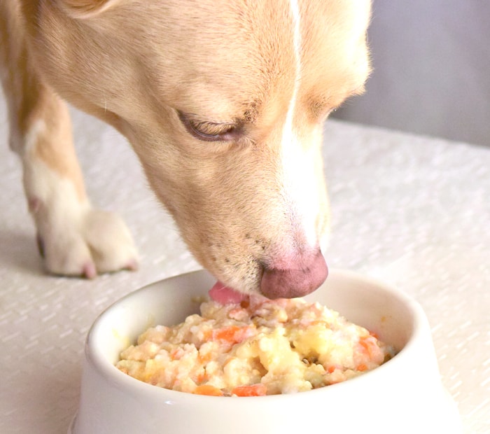 ドライフードが主食で水もあまり飲まないなど、水分をもっと摂らせてあげたい子にもおすすめ。水分たっぷりの食事です。