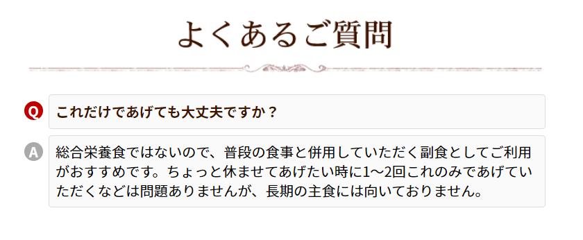 長期の主食には適しません。お肉などをプラスしてください。 ※総合栄養食ではありません