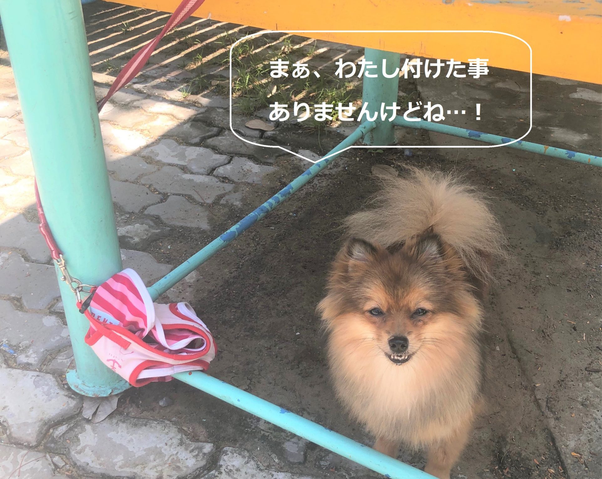 【ハーネスも防虫服も全て脱いで自由になっているが気づいていない?すみよし🐶】